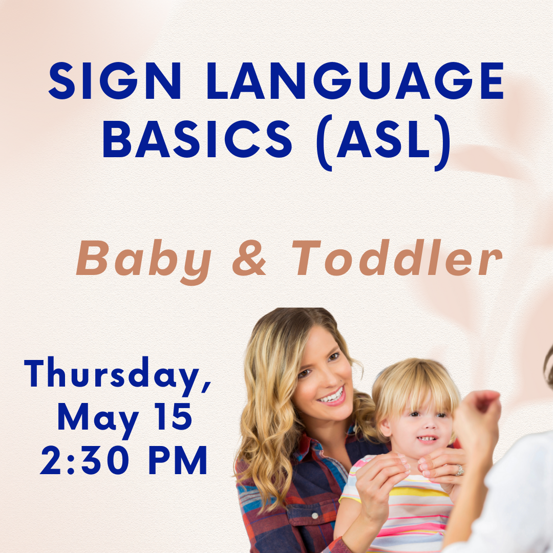 Our Collegedale neighbor, student and library patron Ms. Ellie will be here to teach us some of the basics of ASL communication to toddlers and baby + their parent, grandparent or other guardian. She will demonstrate greetings, basic words and emotions in order to allow our youngest patrons to communicate before developing their verbal skills. Join Ms. Ellie for a taste of ASL communications for parents and babies/toddlers!