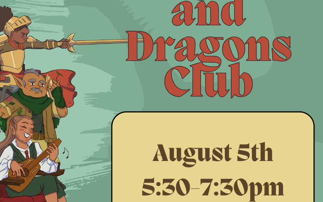 Join us this month to play D&D in the library pop-up! Ages 11+, Limited Availability